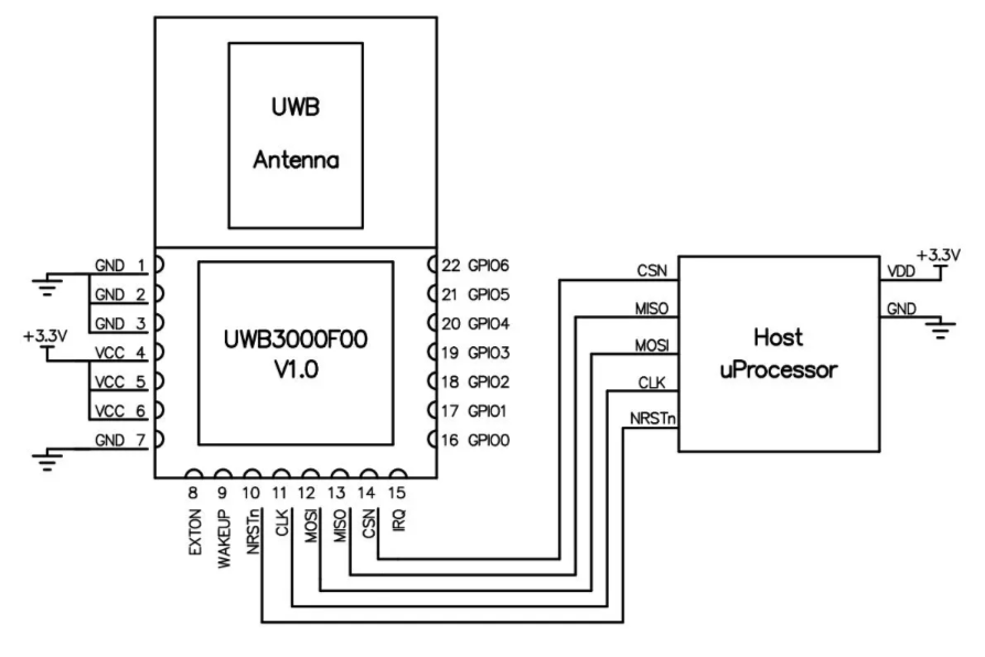 UWB3000F00: приемопередатчик с низким энергопотреблением.