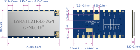 Модуль LORA1121F33-2G4 построен на чипе LR1121 от LR1121, сверхнизкой мощности, дальнейшем трансивере LORA, поддерживающем Sub-GHZ и 2,4G-полосу. Поддерживает Lora, (G) FSK Modulation, Sigfox Protocol и LR-FHSS. Он совместим с протоколом связи Lorawan и может функционировать как узел Lorawan. Кроме того, он предлагает гибкие параметры конфигурации для удовлетворения требований различных приложений и проприетарных протоколов.