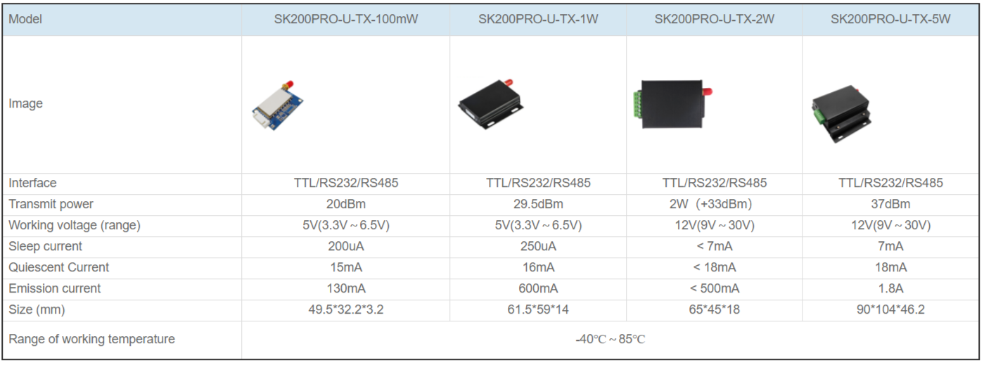 SK200PRO-U-это промышленный беспроводной модуль управления единым коммутатором. Он состоит из SK200PRO-U-TX (модуль передатчика) и SK200PRO-RX (модуль приемника). Передатчик может выбрать модуль с мощностью 100 МВт, 1 Вт или 5 Вт по мере необходимости. Беспроводная конструкция использует технологию LORA, которая обладает высокоэффективной чувствительностью и сильной противоположностью. Его расстояние связи и получение чувствительности лучше, чем модуляция FSK и GFSK. В рабочем режиме «один-один» в сотрудничестве с сетчатой сетью, которая поставляется с приемным концом, он может сформировать сетевую передачу без слепых пятен и ограничений на расстояние. Передатчик предоставляет интерфейс управления последовательными командами, соответствующий выходным интерфейсам нескольких модулей приемника. Он имеет характеристики простого интерфейса и надежной работы. Пользователи могут объединить наш интерфейс ПК для настройки и изменения внутренних параметров модуля. Параметры приемника могут быть беспроводным образом настроены передатчиком, что удобно для онлайн -изменений. Многократная одновременная связь не будет мешать друг другу, и она гибкая и удобная в использовании. SK200PRO-U строго использует процесс без свинца для производства и тестирования, а также соответствует стандартам ROHS и достижению. ПОДЕЛИТЬСЯ ЭТИМ ___________________________________________________________________