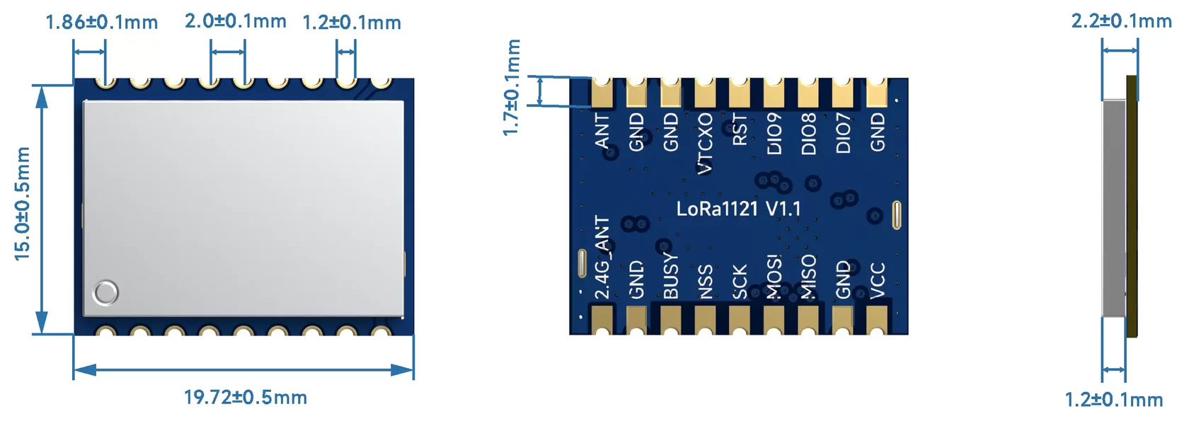 - Чувствительность приема 2,4 ГГц: до -129 дБм при полосе пропускания = 406 кГц, SF = 7